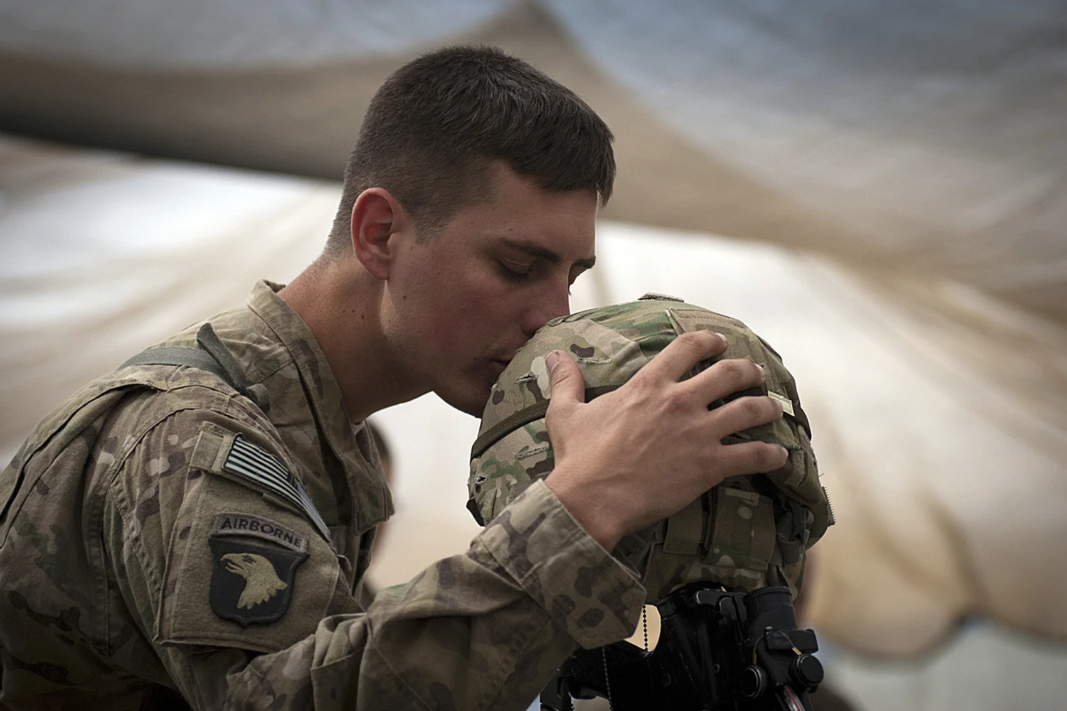 KUNAR PROVINCE, Afghanistan – As the sun sets behind U.S. Army Sgt. 1st Class Jamie R. Johnson, a platoon sergeant from Park Hills, Mo., assigned to Bayonet Company, 2nd Battalion, 327th Infantry Regiment, Task Force No Slack, he peers into the floo