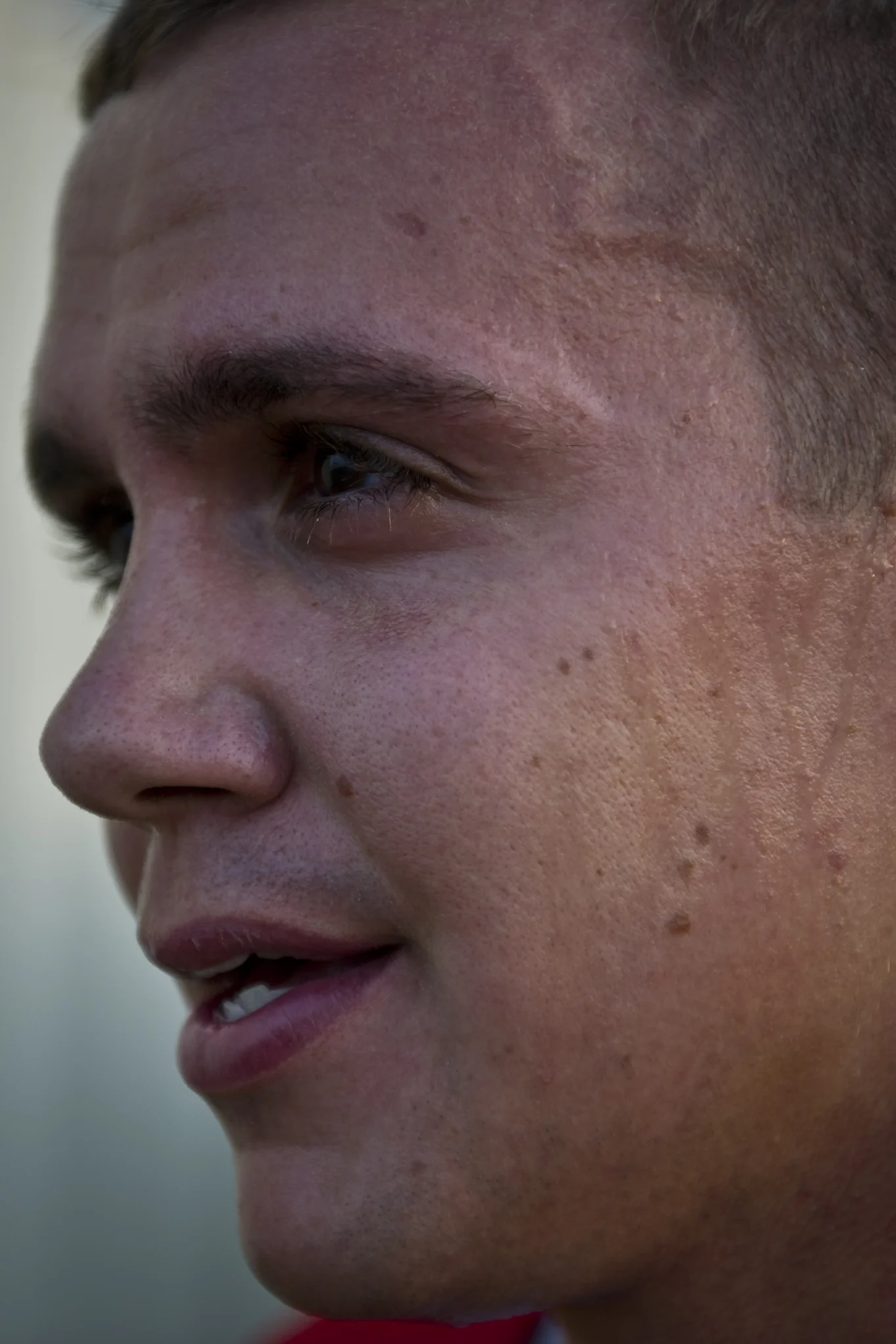 Staff Sgt. Jason E. Searcy, a military policeman from Columbus, Ga., assigned to the 75th Division, grits his teeth while getting an intravenous injection to replenish vital fluid after completing a 10-kilometer ruck march for the 2010 Army Reserve