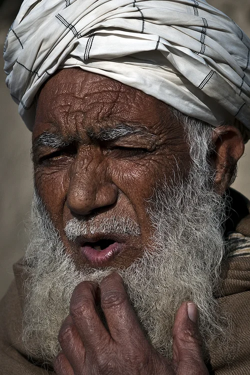 NANGARHAR PROVINCE, Afghanistan – A Bodi Kot village elder scratches his beard and discusses local issues in his area with U.S. Army Soldiers assigned to Company A, 1st Special Troops Battalion, Task Force Spartan, during a recent patrol in eastern Afghanistan’s Nangarhar Province, Jan. 15. The villager said the area is very safe now. (Photo by U.S. Army Staff Sgt. Mark Burrell, 210th MPAD)