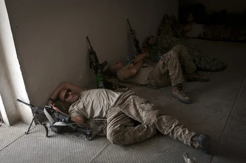 KUNAR PROVINCE, Afghanistan – Soldiers from Company A, 2nd Battalion, 35th Infantry Regiment, Task Force Cacti, 3rd Brigade Combat Team, 25th Infantry Division, Task Force Bronco, rest after pulling guard duty at night and in between training the Afghan National Army during Operation Stone Steps at Nangalam Base in eastern Afghanistan's Kunar Province, June 1. The operation was the first of it's kind at Nangalam Base, formerly Forward Operation Base Blessing, after realigning many Pech River Valley bases in March. (Photo by U.S. Army Sgt. 1st Class Mark Burrell, 210th MPAD)