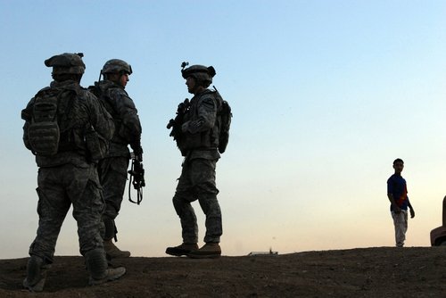 NANGARHAR PROVINCE, Afghanistan – Playful Afghan girls run to hide as U.S. Army Sgt. Nicholas C. Parks, a forward observer from Campbell, Calif., assigned to Troop C, 3rd Squadron, 4th Cavalry Regiment, Task Force Raider, 3rd Brigade Combat Team, 25th Infantry Division, Task Force Bronco provides security during a village patrol in Rodat District in eastern Afghanistan's Nangarhar Province, July 18. The patrol visited three different businesses to notify the shop owners that they had been approved for a small business grant. (Photo by U.S. Army Sgt. 1st Class Mark Burrell, 210th MPAD)